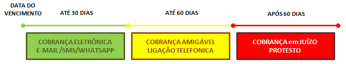 Da data do Vencimento até 30 dias não há o que fazer a não ser cobranças eletrônicas via E-mail, SMS, Whatsapp.